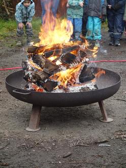 Gemeinsam sangen wir fröhliche Lieder ums St. Martinsfeuer.