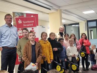 Am vergangenen Mittwoch überreichte Herr Schmidt, Filialleiter der Zweigstelle Dierdorf, den Gutenbergschülern jeweils eine prall gefüllte Geschenketasche. Mit den Kindern freute sich Schulleiterin Andrea Theisen-Welsch und bedankte sich herzlich für das Engagement der Sparkasse.