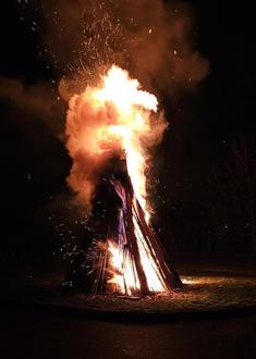 Am wärmenden Sankt-Martins-Feuer konnte der Abend bei Martinsbrezeln, Würstchen und Getränken gemütlich ausgeklungen werden.