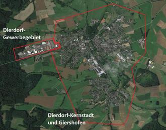 Die Kernstadt Dierdorf und der Stadtteil Giershofen der Stadt Dierdorf stellen eine einheitliche Abrechnungseinheit dar. Einzig das im Westen der Kernstadt Dierdorf gelegene Gewerbegebiet wurde als gesonderte Abrechnungseinheit gefasst. Nach eingehender Prüfung der Gesamtumstände ist keine weitere Aufteilung der Kernstadt und des Stadtteils erforderlich. Die Abrechnungseinheit „Dierdorf-Kernstadt und Giershofen“ wird in alle Himmelsrichtungen durch weitläufige Außenbereichsflächen umgeben und abgegrenzt. Durch die Kernstadt Dierdorf verlaufen die klassifizierten Straßen B 413 („Neuwieder Straße“), L 267 („Wied-Runkel-Straße“, „Obertorstraße“, „Johanniterstraße“), K 153 („Hachenburger Straße“) und K 120 („Poststraße“, „Bochowstraße“). Ferner die Bachläufe des „Dernbach“, „Schlimmbach“ und „Holzbach“ sowie die Bahnstrecke der Lappwald-Bahnlinie. Im südlichen Verbindungsbereich beider Orte verbinden Gewerbegrundstücke die benannte Abrechnungseinheit. Durch den Stadtteil Giershofen verlaufen ebenfalls die klassifizierte Straße K 120 („Bochowstraße“) sowie die Lappwald-Bahnlinie. Zudem verlaufen durch den Stadtteil Giershofen die Bachläufe „Ölsbach“ und „Holzbach“.