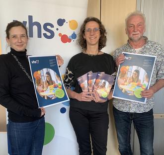 Präsentieren das Fortbildungsprogramm 2024 der Kreisvolkshochschulen für pädagogische Fachkräfte (von links): Alexandra Tschesche (kvhs Westerwaldkreis), Simone Kirst (kvhs Neuwied), und Bernd Kohnen (kvhs AItenkirchen).