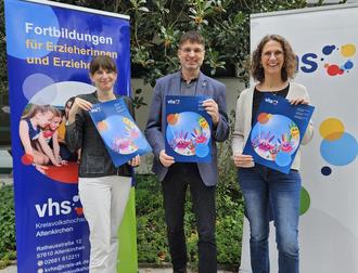 Präsentieren das Fortbildungsprogramm 2025 der Kreisvolkshochschulen für pädagogische Fachkräfte (von links): Alexandra Tschesche (kvhs Westerwaldkreis), Holger Telke (kvhs Altenkirchen) und Simone Kirst (kvhs Neuwied)