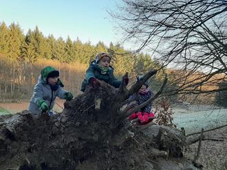 Knackig kalt, gepuderte Wiesen und tatsächlich Sonnenschein. Am 12.12. machten sich Eltern und Kinder, aus der Kita Eulennest, auf den roten Zwergenweg, kurz vor Rengsdorf.