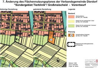 Zu diesem Zweck wird der Vorentwurf der 7. Änderung des Flächennutzungsplanes für den Geltungsbereich des Bebauungsplanes „Sondergebiet Tierklinik“, bestehend aus der Planzeichnung und den Textfestsetzungen, mit der Begründung einschließlich Umweltbericht in der Zeit vom 24.02.2025 bis einschließlich 26.03.2025 auf der Internetseite der Verbandsgemeinde Dierdorf unter https://www.vg-dierdorf.de/bauen-umwelt-wirtschaft/bauen-wohnen/bauleitplanungen/laufende-verfahren/7-Aenderung-Flaechennutzungsplan zur allgemeinen Einsichtnahme bereitgestellt.