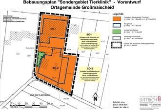 Zu diesem Zweck wird der Vorentwurf des Bebauungsplanes „Sondergebiet Tierklinik“, bestehend aus der Planzeichnung und den Textfestsetzungen, mit der Begründung einschließlich Umweltbericht in der Zeit vom 24.02.2025 bis einschließlich 26.03.2025 auf der Internetseite der Verbandsgemeinde Dierdorf unter https://www.vg-dierdorf.de/bauen-umwelt-wirtschaft/bauen-wohnen/bauleitplanungen/laufende-verfahren/Sondergebiet Tierklinik Großmaischeid zur allgemeinen Einsichtnahme bereitgestellt.