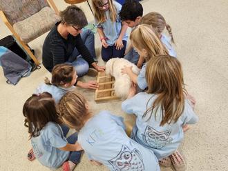Elke mit ihrem Hund Fiete hat uns am 11.01.2024 im Schuki Treff besucht. (Elke Thiemann; Jugendpflege VG Dierdorf)