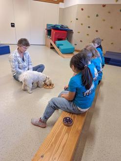 Am 15.01.2026 sowie am 22.01.2026 durften die Schukis einen ganz besonderen Gast begrüßen: Elke Thiemann, Jugendpflegerin der Verbandsgemeinde Diedorf, kam gemeinsam mit ihrem Hund Fiete in unsere Einrichtung. So knüpft Frau Thiemann bereits den ersten Kontakt zu den Kindern, die später eventuell ihre Freizeiten besuchen werden. Sie erklärte den Schukis anschaulich und kindgerecht den richtigen Umgang mit fremden Hunden. Dabei hörten sie aufmerksam zu und waren mit großer Begeisterung bei der Sache – dabei eroberte Fiete die Herzen aller Kinder.