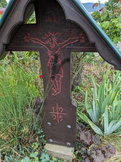Vermutlich am Wochenende wurde ein Lämpchen am Wegekreuz am Angstweg entwendet und beschädigt, sowie verschiedene Gegenstände mit Farbe beschmiert, u.a. auch das Wegekreuz selbst.