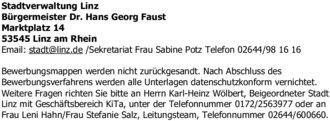Email: stadt@linz.de /Sekretariat Frau Sabine Potz Telefon 02644/98 16 16