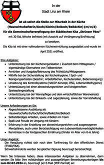 Weitere Fragen richten Sie bitte an Herrn Karl-Heinz Wölbert, Beigeordneter Stadt Linz mit Geschäftsbereich KiTa, unter der Telefonnummer 0172/2563977 oder an Frau Leni Hahn/Frau Stefanie Salz, Leitungsteam, Telefonnummer 02644/600660.
