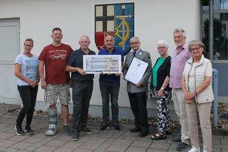 Vertreter der Dorfgemeinschaft Rott und Vorstandsmitglieder des Fördervereins bei der Scheckübergabe