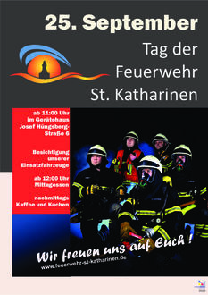 Um unsere treuen Gäste und uns selbst für die Geduld während der Corona-Einschränkungen zu belohnen, führen wir den „Tag der Feuerwehr“ ein. Wir starten am 25.09.2022 um 11:00 Uhr im und um das Feuerwehrgerätehaus in St. Katharinen. Ein Frühschoppen, leckeres Mittagessen findet sich ebenso wie unser fast schon legendäres Kuchenbuffet. Selbstverständlich werden unsere Fahrzeuge ausgestellt und gerne Fragen zur Feuerwehr beantwortet. Derzeit haben wir einen erfreulich hohen Mitgliederstand. Gerne nehmen wir aber weitere Aktive auf, da uns in der nächsten Zeit auch Kameraden altersbedingt verlassen werden. Also sprecht uns gerne an. Auch zum Thema Jugendfeuerwehr informieren wir gerne. Dieser vielleicht einmalige Tag soll den Tag der offenen Tür nicht ersetzen, uns aber in einem anderen Format die Möglichkeit geben, auf die Bevölkerung zuzugehen. Der nächste Tag der offenen Tür ist für den 07.05.2023 geplant.
