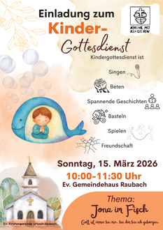 | 10.00 Uhr | Kindergottesdienst, Gemeindehaus Raubach |