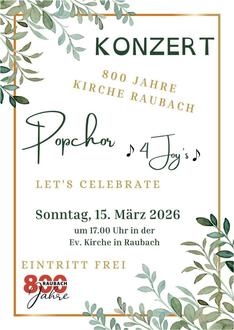 | 17.00 Uhr | Konzert des Popchors „4Joys“ in der Ev. Kirche in Raubach |