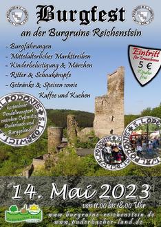 Der Förderverein der Burgruine Reichenstein veranstaltet in Zusammenarbeit mit der Touristik „Puderbacher Land“ am 14. Mai ein Burgfest rund um die Burgruine Reichenstein.