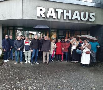 Trotz des unerwarteten Wetters wurden die Teilnehmerinnen und Teilnehmer kreativ und zogen sich in den großen Ratssaal des Rathauses zurück, um die geplante Stadtführung virtuell fortzusetzen. Mithilfe alter Fotos und Kommentierungen durch die Stadtführerinnen konnten sie sich weiterhin einen Eindruck von der historischen Bedeutung der Region verschaffen.