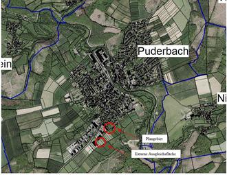 Eine externe Kompensationsfläche befindet sich auf dem Flurstück 395, Flur 8, Gemarkung Puderbach.