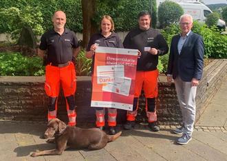 Bürgermeister Mendel überreichte die ersten Ehrenamtskarten des Landes Rheinland-Pfalz an drei Ehrenamtliche der BRH Rettungshundestafel Westerwald e.V. Mit der Verleihung der Ehrenamtskarten würdigt Bürgermeister Mendel den besonderen ehrenamtlichen Einsatz für die Gemeinschaft.