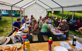 Trotz heißer Temperaturen konnten erfreulicherweise viele Döttesfelder/innen begrüßt werden. Nicht nur die auf dem historischen Eisen gebackenen Waffeln und kühlen Getränke fanden reißenden Absatz. Auch saftige Steaks und leckere Bratwurst ließen sich die Besucher/innen schmecken. Der erste Beigeordnete Winfried Weinert begrüßte auch im Namen des Bürgermeisters die Anwesenden, die sich von der sommerlichen Hitze nicht hatten aufhalten lassen, am Fest teilzunehmen. Am späteren Nachmittag brachte ein heftiger Regenguss endlich die ersehnte Abkühlung und trug dazu bei, dass man in geselliger Runde gerne noch etwas länger blieb.