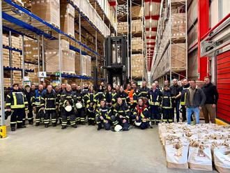 Dernbach. Zu einer gemeinsamen Übung fanden sich kürzlich die Freiwilligen Feuerwehren Dernbach und Raubach auf dem Werksgelände der Firma Mank in Dernbach zusammen. In der etwa 9.000 Quadratmeter großen Logistikhalle des Betriebs gab es an diesem Nachmittag gegen 16 Uhr folgendes Übungsszenario zu bewältigen: Ein Stapler ist während dem Betrieb in Brand geraten. Der Fahrer des Arbeitsgerätes stoppte die Fahrt nach kurzer Zeit im Bereich der Verladerampen. Im Technikraum kam es indes zu einem Unfall, bei dem ein Mitarbeiter unter einem Stapler eingeklemmt wurde. Aufgrund des Brandes löste die Brandmeldeanlage entsprechend aus.