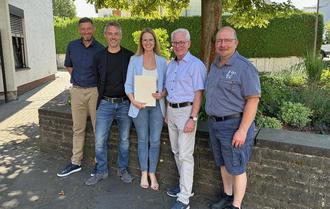 Bürgermeister Mendel würdigte Frau Funks Engagement und ihren stetigen beruflichen Einsatz für die Verbandsgemeinde. Auch Büroleiter Markus Klein, Bauamtsleiter Markus Sommer sowie Personalratsvorsitzender Heiko Weller gratulierten herzlich zur verdienten Beförderung.