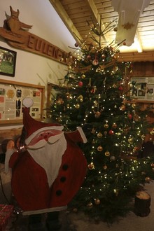 Die wunderbaren Weihnachtslieder des Chores aus der Schutzhütte am Waldrand über die schneebedeckten Felder hinweg erzeugten Gänsehautstimmung bei allen Zuhörerinnen und Zuhörern (und daran war in diesem Falle nicht die Kälte schuld). Für die Kinder hatte Stefan Kraus mit weiteren Helfern schließlich einen Bollerwagen bereit gestellt, beladen mit Maiskolben, Möhren, Äpfeln, Nüssen und anderen Leckereien, mit denen drei Weihnachtsbäume für die Tiere des Waldes geschmückt wurden. Ihren Abschluss fand die Wanderung dann wieder im „Eulennest“, dem außerschulischen Lernort am Beginn des Pfades. Mit weiteren Weihnachtsliedern begleitet von der Mundharmonika sowie einem Gedicht vorgetragen von Heidi Neitzert klang die Veranstaltung allmählich aus, während Gerd Köhler, Cerstin Schneider, Elke Höwer und Ewald Kallscheid die Anwesenden noch mit Stockbrot, Würstchen, Kinderpunsch, Glühwein und kalten Getränken versorgten. Und dass auch der Nikolaus trotz seiner Erkrankung für alle Kinder noch etwas Süßes vorbei gebracht hatte, rundete den stimmungsvollen Abend in gelungener Weise ab.