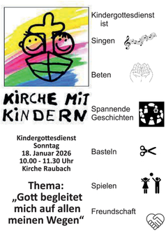 | 10:00 Uhr | Kindergottesdienst in Raubach |