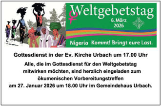 | 18:30 Uhr | Gottesdienst in Urbach |