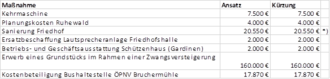 | Kostenbeteiligung Bushaltestelle ÖPNV Bruchermühle | 17.870 € | 17.870 € |