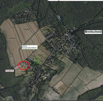 Das Plangebiet befindet sich in der Ortsgemeinde Döttesfeld, Ortsteil Breitscheid und ist im Süd-Westen des Ortsteiles an der „Feldstraße“ gelegen. Die Feldstraße ist durch die Grenzbachstraße geteilt. Das Plangebiet liegt im westlichen Teil der Feldstraße. Im Norden und Osten wird das Plangebiet von der bereits vorhandenen Bebauung begrenzt, während sich im Süden und Westen landwirtschaftliche Flächen bzw. Grünlandflächen an dieses anschließen. Eine externe Ausgleichsfläche befindet sich in der Flur 7, Flurstück 146 (teilw.), Gemarkung Döttesfeld.