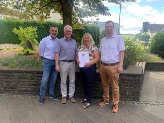 von links: Karl Hauck, Bürgermeister Volker Mendel, Martina Blum und Stephan Hoffmann
