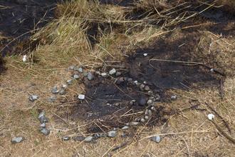 Zwei Jungen, die auf einem nahen Spielplatz waren, berichteten, dass sie plötzlich Rauch sahen und zwei Kinder seien „Feuer, Feuer“ schreiend weggelaufen. Ein Anwohner hat dann den Notruf abgesetzt. Vorgefunden wurde in der Tat ein auf einem unbefestigten Feldweg ein mit Steinen gelegter Kreis. Es war ersichtlich, dass von dort das Feuer in die Wiese gelaufen ist. Gefunden wurden auch kleine Stöckchen, an denen noch Marshmallows klebten.