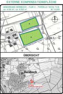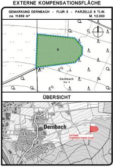 Die beiden externen Ausgleichsflächen befinden sich auf dem Flurstück 103/32, Flur 6, Gemarkung Dernbach, sowie auf dem Flurstück 8, Flur 5, Gemarkung Dernbach (jeweils teilweise).