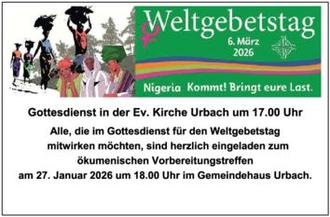 | Alle, die im Gottesdienst am 06.März 2026 um 17 Uhr mitwirken möchten, sind herzlich zu diesem Treffen im Gemeindehaus Urbach eingeladen. |