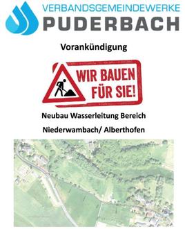Vorankündigung Wasserleitungsverlegung Steimel Niederwambach