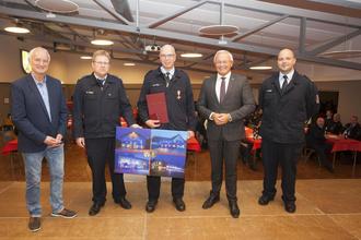 Eine besondere Ehrung wurde dem ehemaligen Wehrleiter Dirk Kuhl (Mitte) zuteil.