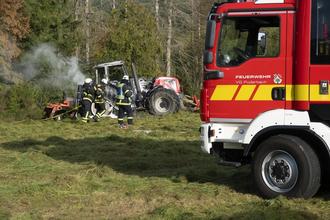 Traktor ging beim Mähen plötzlich in Flammen auf