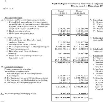 Die Bilanz des Wasserwerkes zum 31.12.2022 schließt in Übereinstimmung von Aktiv- und Passivseite mit einer Bilanzsumme in Höhe von 29.178.408,09 € ab und wird entsprechend festgestellt.