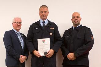 Ansgar Geimer (Mitte) von der Feuerwehr Raubach wurde zum Stellvertretender Wehrleiter beauftragt.