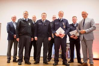 Die Geehrten Holger Kuhl (4.v.r.), Stefan Wirth (2.v.r.) und Dieter Klein-Ventur (3.v.r.)