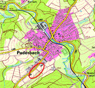 Das Plangebiet befindet sich am südlichen Ortsrand der Ortsgemeinde Puderbach in der Flur 8, Gemarkung Puderbach. Im Nordwesten wird es durch die Landesstraße 264 begrenzt. Der Geltungsbereich der 7. Änderung des Flächennutzungsplanes ist in beigefügtem Übersichtsplan durch eine hervorgehobene, gestrichelte Linie unmaßstäblich dargestellt.