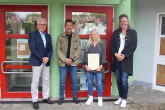 Bürgermeister Volker Mendel gratulierte der Mitarbeiterin mit einer Dankurkunde und überreichte den Wappenteller der Verbandsgemeinde Puderbach. Der Gratulation schlossen sich die Kolleginnen, der zuständige Sachgebietsgruppenleiter bei der Verbandsgemeindeverwaltung Andreas Fetter, sowie die Leitung der Kita Raubach Frau Helga Kober an.