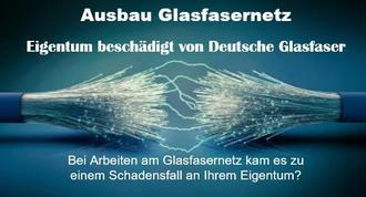 Sollten während der Bauarbeiten Schäden an Ihrem Grundstück oder Eigentum entstehen, verpflichtet sich die Deutsche Glasfaser, diese Reparaturen zu übernehmen. Hierzu zählen nur Schäden, die eindeutig und in direktem Zusammenhang mit dem Ausbau des Glasfasernetzes verursacht wurden und nicht vorhersehbar waren, wie etwa eine beschädigte Gartenmauer oder Pflasterung. Ein am falschen Ort angebrachter Glasfaser-Modem z.B. gilt nicht als Schaden.