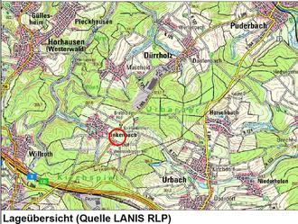 Das Plangebiet liegt östlich der Ortsgemeinde Linkenbach in der Flur 24, Gemarkung Linkenbach und ist durch Wiesen und die L 265 von der Ortslage getrennt. Es schließt sich im Süden an den Aussiedlerhof,,Birkhof‘‘ an und wird im Westen durch die L 265 begrenzt. Im Norden und Osten der Fläche schließen sich weitere landwirtschaftlich genutzte Flächen an.
