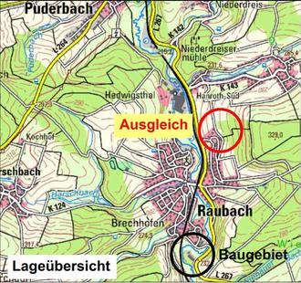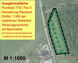 Eine externe Ausgleichsfläche befindet sich auf dem Flurstück 77/2, Flur 2, Gemarkung Raubach (teilweise).