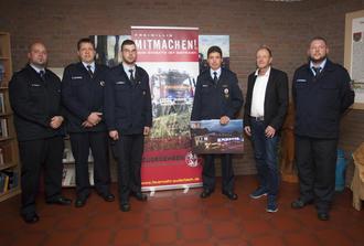 Von links: Wehrleiter Alexander Neuer, Dieter Schumann, Jonas Asbach, Sven Born, Diethelm Stein und Markus Schlösser. Foto: Wolfgang Tischler