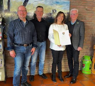 Bürgermeister Volker Mendel gratulierte der Jubilarin mit einer Dankurkunde der Verbandsgemeinde Puderbach. Der Gratulation schlossen sich Fachbereichsleiter Karl Hauck und Personalratsvorsitzender Heiko Weller an.