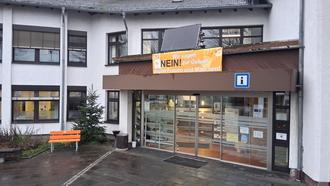 Momentan hängt am Gebäude der VG in Puderbach ein Banner mit der Aufschrift „Nein zur Gewalt an Frauen und Mädchen“. Dieses wird noch bis zum 10.12., dem Tag der Menschenrechte, dort hängen. Auf dem Foto ist auch eine von vier orangen Bänken zu sehen, die mittlerweile in Puderbach bzw. in Steimel und Urbach aufgestellt wurden.