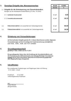 Die Festsetzungen sind Abrechnungsgrundlage der Entgeltsforderungen, die aufgrund Lieferungen und Leistungen des Abwasserwerkes im Jahre 2026 entstehen.