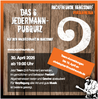 Rengsdorf. Tradition trifft Geselligkeit: Die Rockfreunde Rengsdorf laden auch in diesem Jahr wieder zu zwei beliebten Veranstaltungen auf dem Waldfestplatz ein. Am Donnerstag, 30. April 2026, steht die mittlerweile 6. Auflage des Jedermann-Pubquiz auf dem Programm, bevor am Freitag, 1. Mai 2026, der traditionelle Maiausschank Wanderer und Besucher anlockt.